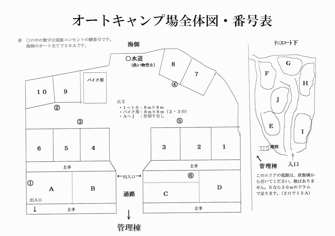 オートキャンプ場の様子(区画あり10区/区画なし10区)